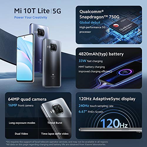 Spécification: Xiaomi Mi 10T Lite – Smartphone 6+64GB, 6,67” FHD+ DotDisplay, Snapdragon 750G, 64MP AI Quad Camera, 4820mAh, Alexa…